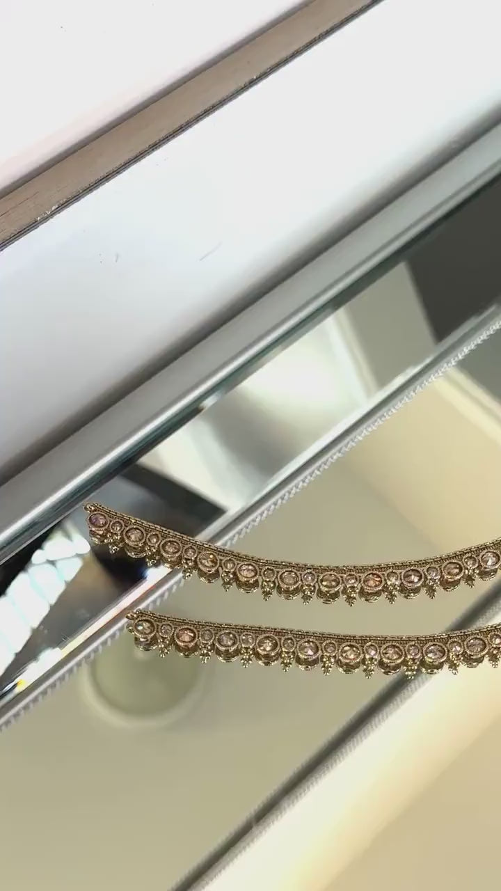 Polki Antique Gold Jhanjar with Bells Gift Set | Gift for Wife, Gold Anklets, Antique Gold Payal, Polki Payal, Sheeshphool, Indian Jewelry